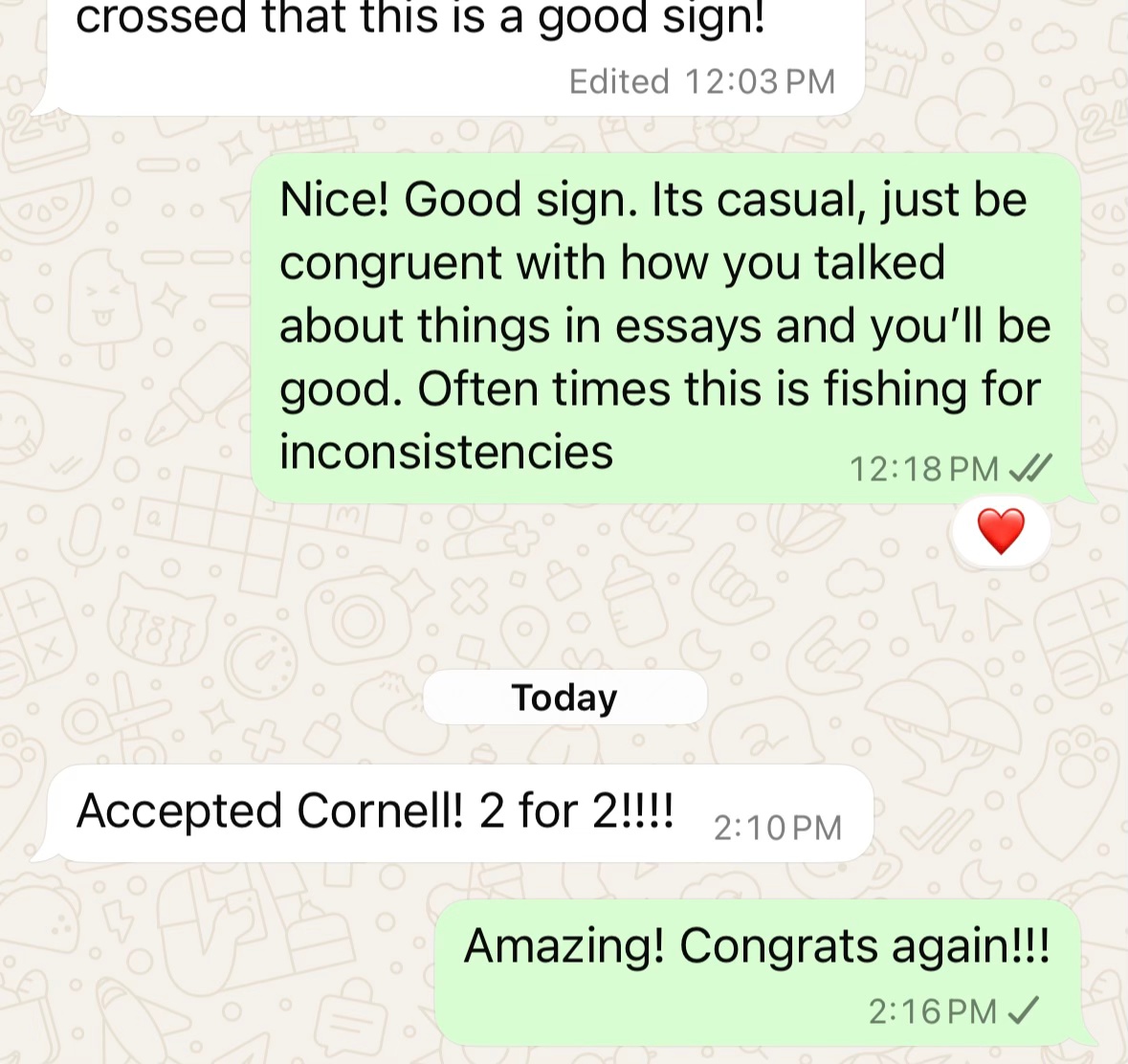 First, we help you identify your unique strengths and experiences that set you apart from other applicants. During the initial months, our focus will be to assist you in developing your extracurricular activities. Then, we work with you to craft a compelling personal statement that showcases your talents and tells your story in a way that resonates with admissions officers. Along the way, our experienced advisors provide feedback and guidance on your essays to ensure they are well-written, polished, and impactful.